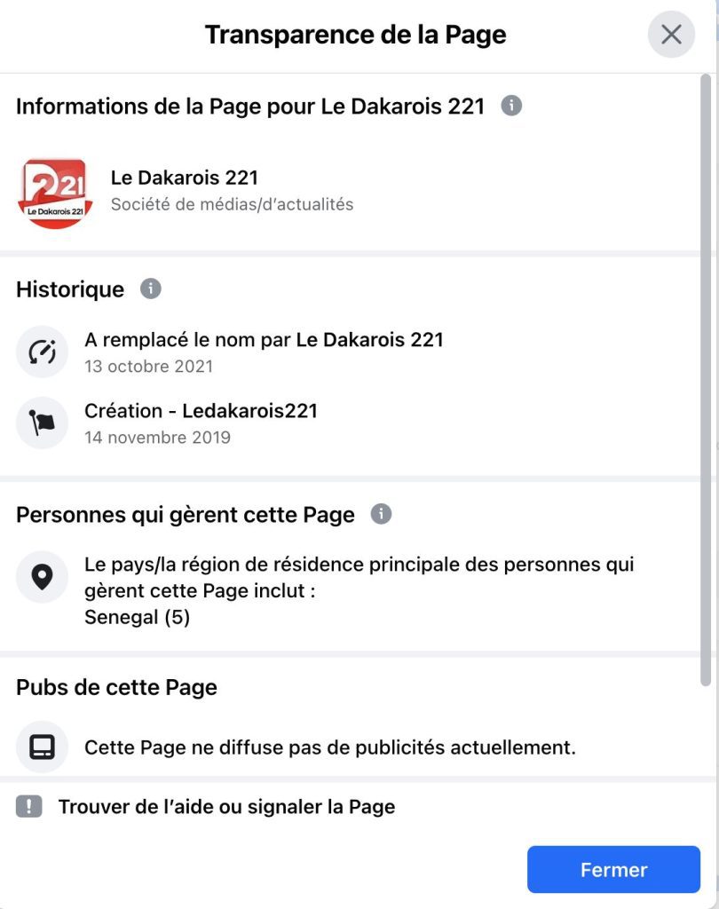 La page « Le Dakarois 221 » se présente comme une société de médias basée à Dakar, Sénégal, créée le 14 novembre 2019. Elle est gérée par des personnes au Sénégal.