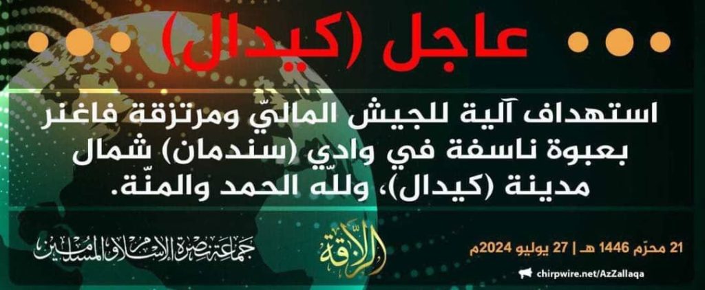 Lors du rassemblement initial des rebelles à Tinzaouatène, le chef de guerre local du Jnim Abd-Rahmane Zaza, le même nom cité par Wagner dans son communiqué officiel, était présent, d'après l'analyse d’Acharaf (prénom modifié), un observateur de la crise sécuritaire sahélienne. « Mais pas en tant que représentant des jihadistes. C'est quand des renforts du Jnim sont arrivés d’autres localités que ce chef local s’est joint aux jihadistes », renseigne-t-il. Cette coalition affiliée à Aqmi, poursuit-il, ne s'est formellement engagée que le samedi 27 juillet. « C'était à travers l’embuscade tendue au renfort » des militaires maliens et supplétifs russes qui venaient de quitter Kidal. Dans la matinée du 27 juillet, le Jnim a effectivement revendiqué une attaque à l'engin explosif improvisé (IED) contre un véhicule de l'armée malienne et de Wagner dans la vallée de Sindiman, au Nord de Kidal, sans plus de détails.